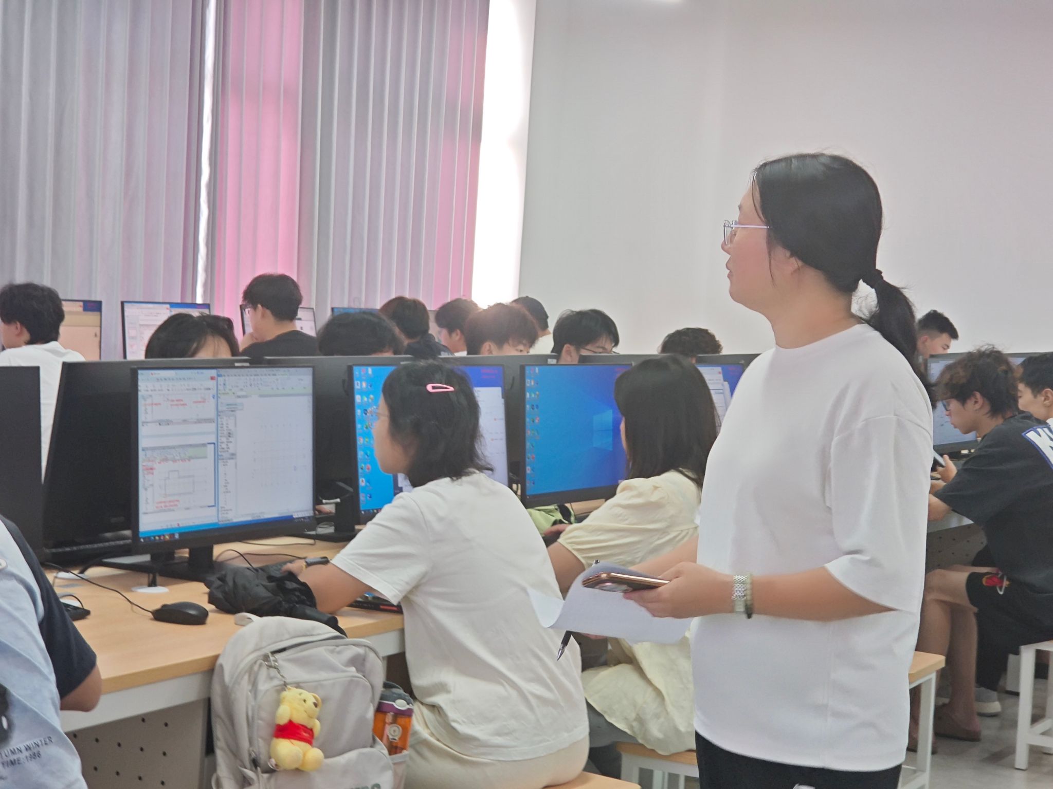 巡查组以 “查教学秩序、看教师状态、问学生适应、督保障落实” 为核心,采取 “随机进班、现场观察” 的方式,逐一走访新生课堂与实训室。巡查过程中,院长潘丹及教学副院长郑永芹重点查看了新生课堂的教学秩序、授课教师到岗及备课情况,同时关注新生的课堂适应度与学习状态。从巡查结果看,首日教学整体呈现 “开局稳、状态佳、保障实” 的良好态势:全体授课教师提前到岗调试设备,教案设计聚焦新生 “从高中到大学” 的认知过渡;新生精神饱满,课堂互动积极,对专业实训设备展现出浓厚探索欲。