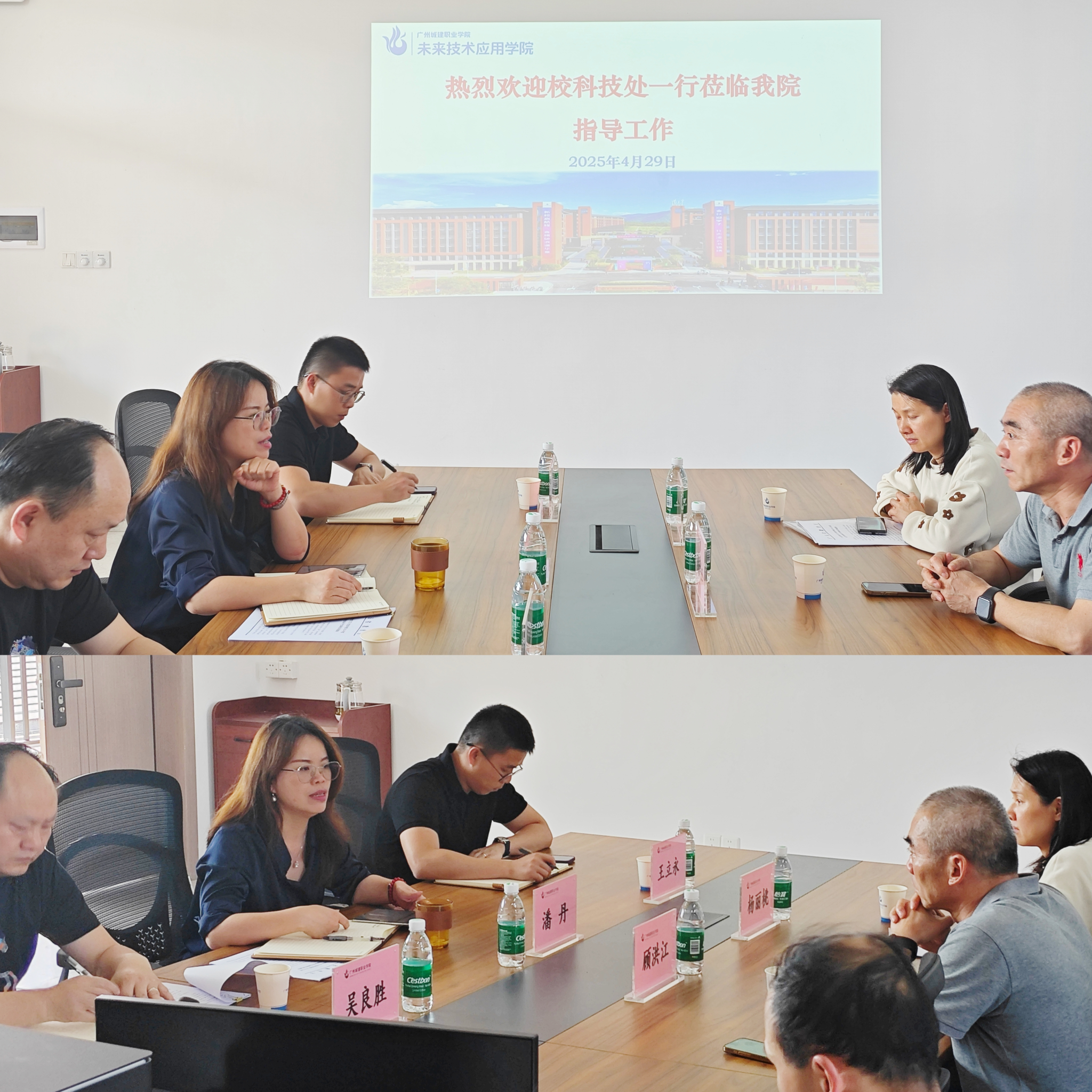 4月29日下午3点,学校科技处顾洪江处长与杨丽桃老师莅临太阳成tyc234cc,于清远校区F4 - 603会议室开展工作指导会议。学院副院长潘丹、王立永,吴良胜教授以及学院任课教师均积极参与了此次会议。