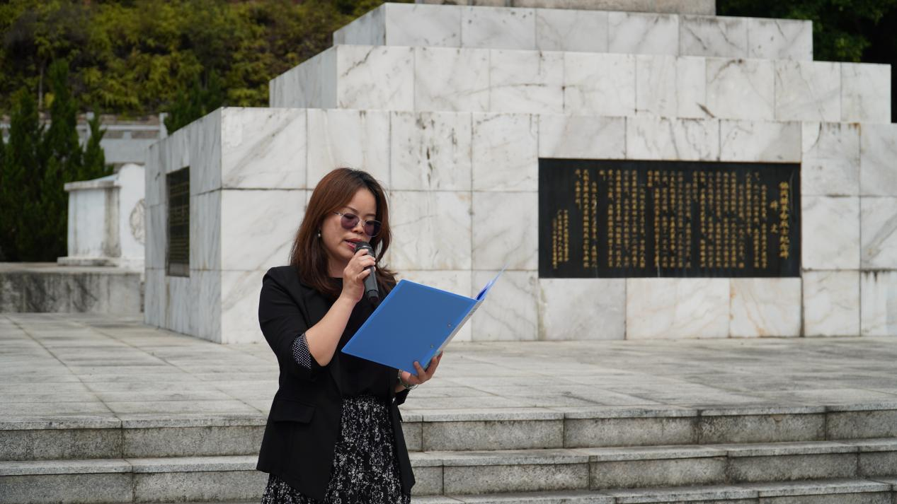 在庄严肃穆的烈士陵园内,青松翠柏环绕,全体师生整齐列队。潘丹在纪念碑前发表讲话,她说:"革命先烈用鲜血和生命换来了今天的和平与幸福。作为新时代的共产党员和青年学子,我们要以史为镜、以先烈为榜样,赓续红色血脉,在各自岗位上勇担使命。"她勉励师生以先烈精神为指引,以实际行动践行责任担当,在各自岗位上勇担时代使命,将先烈精神转化为推动学院高质量发展的实际行动。