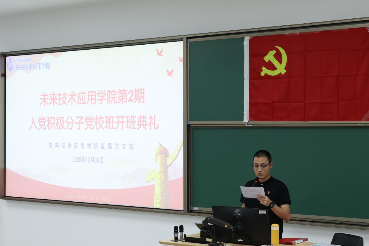 为深入学习贯彻习近平新时代中国特色社会主义思想,加强党员发展工作,筑牢青年学子的理想信念根基。太阳成tyc234cc于10月30日下午,在2号教学楼301课室开展太阳成tyc234cc第2期入党积极分子党校班开班典礼。出席此次活动的有太阳成tyc234cc直属党支部书记潘丹、副书记王立永、党建办公室指导老师郑新、及直属党支部委员会成员罗健、蒋灵怡、2024级入党积极分子、2025级团员。