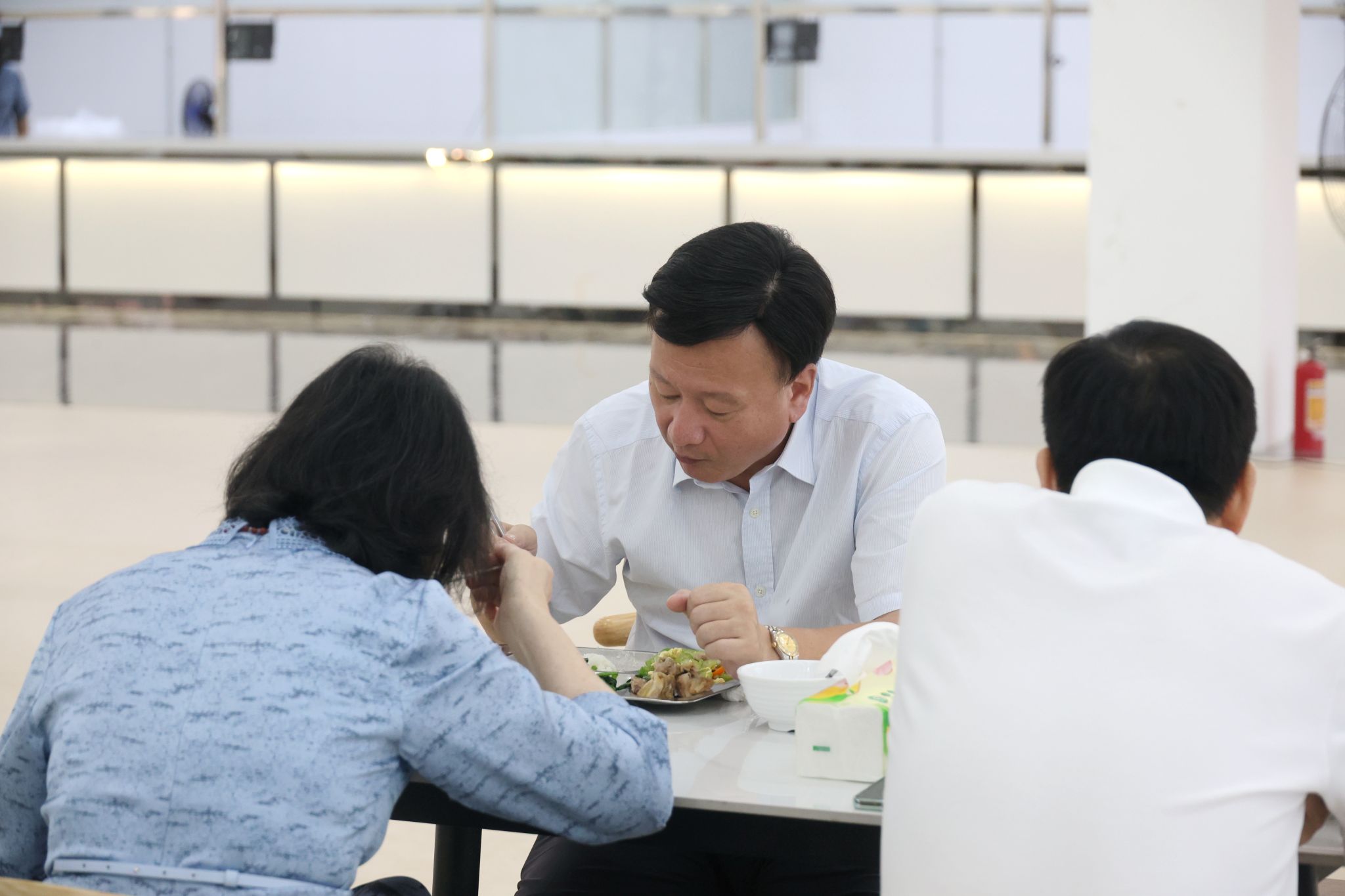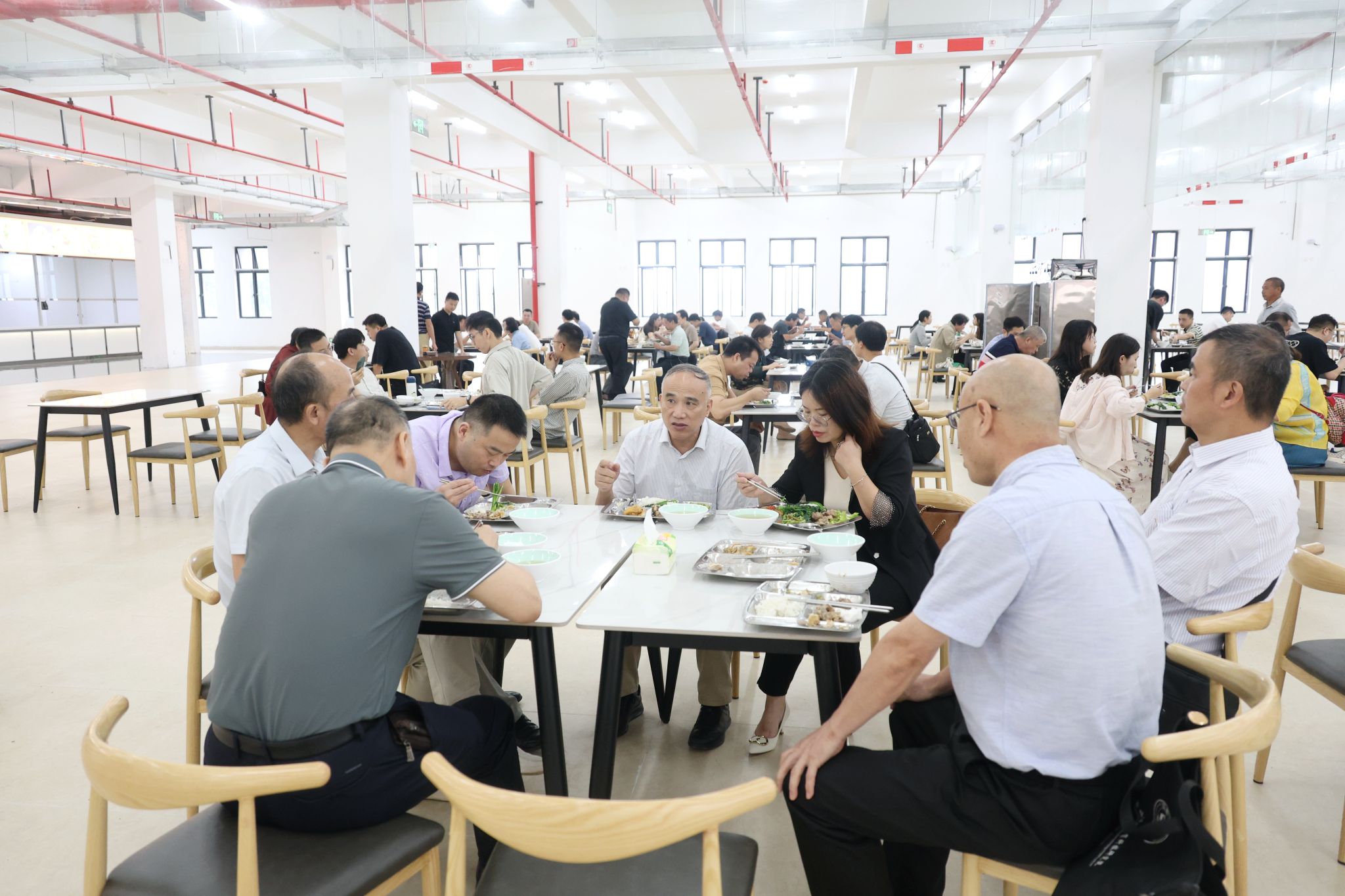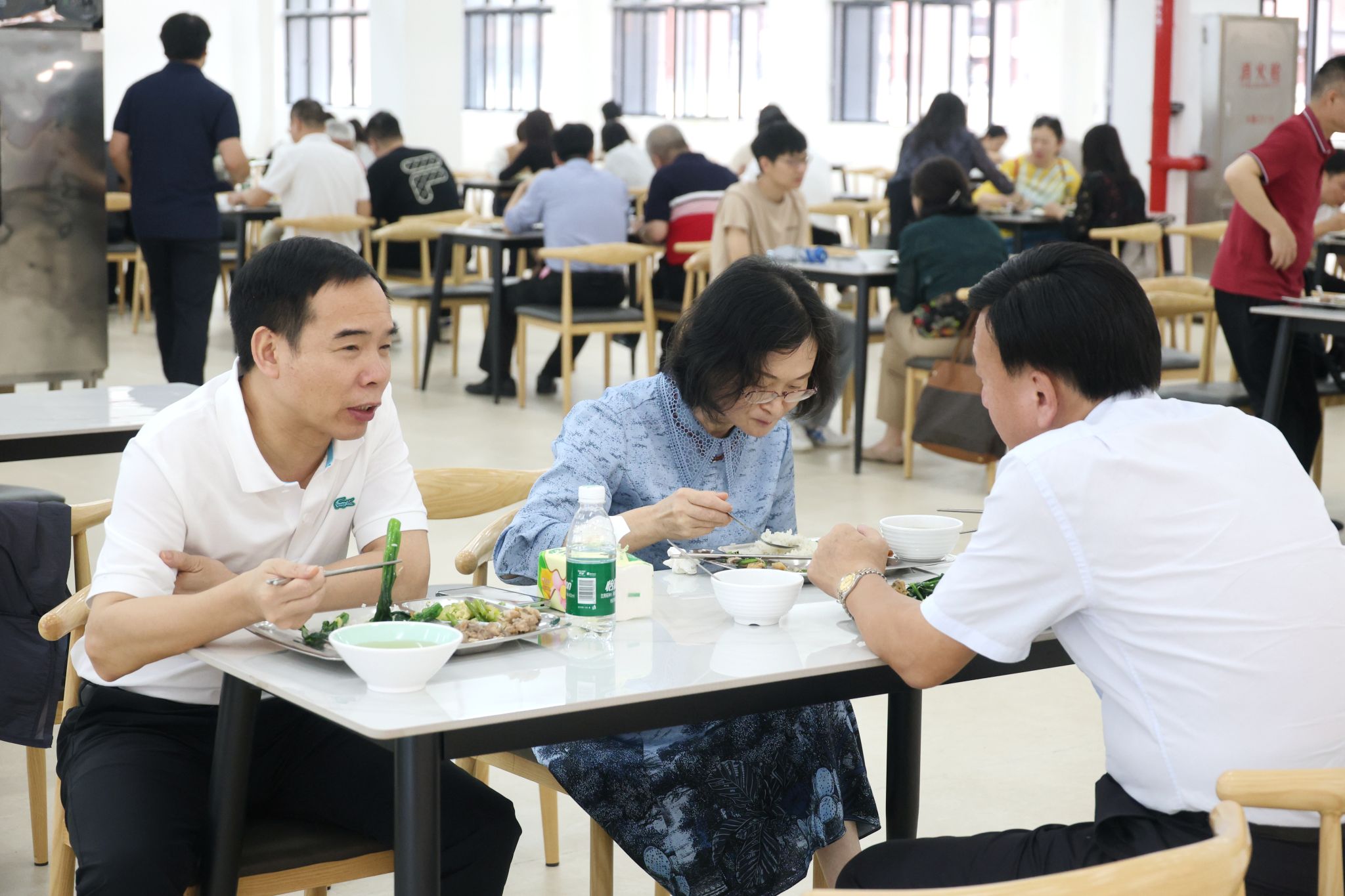 会前,蒋新华等校领导带队查看了新校区教学设施、图书馆、实训室、多媒体课室、学生食堂等现场情况。会后,全体与会人员一起走进新校区食堂,在宽敞明亮的餐厅内试吃了新校区食堂第一餐。