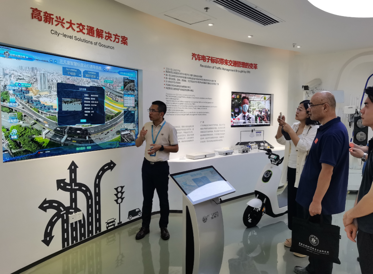 高新兴科技集团作为车联网、智慧交通、公共安全及智能制造等领域的领军企业,其卓越的创新理念和丰富的创新成果,是调研小组关注的焦点。在调研中,调研小组首先参观了高新兴科技集团的展示交流中心,深入了解了企业的研发流程、技术应用与产品创新。集团技术专家向一行来访人员详细讲解了多项前沿技术,包括生成式人工智能、智慧交通、智能视频分析、赋能自动驾驶融合创新解决方案等,并就这些技术在高校实训及实训室建设方面的应用与学院代表进行了深入交流探讨。