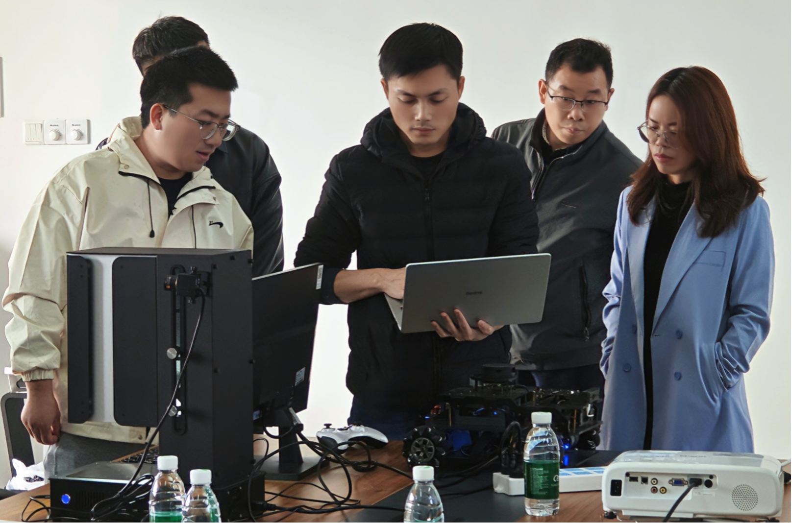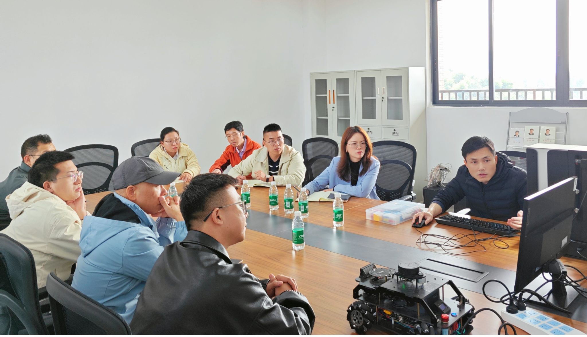 会上,联合伟世团队带来了先进的设备和技术,详细讲解了设备的使用方法,并进行了现场演示。梁经理表示,联合伟世将全力支持学院师生备战大赛,提供技术支持和培训服务。会议结束后,企业方将设备留在了学院,以便师生更好地学习和实践。
