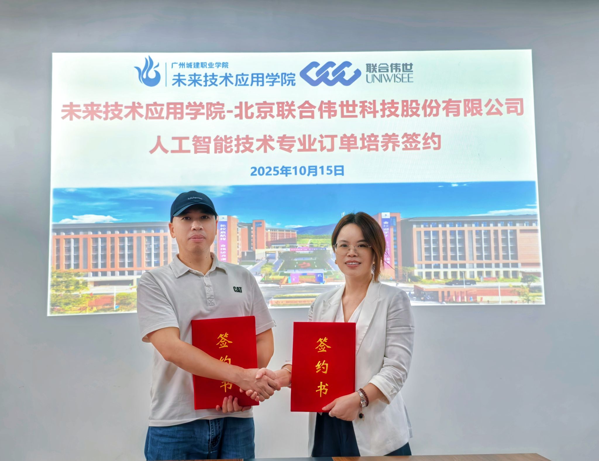 2025年10月15日,太阳成tyc234cc与北京联合伟世科技股份有限公司在学院会议室隆重举行人工智能技术专业订单培养签约仪式。企业方由总经理梁国雄带队出席,学院参会人员包括潘丹院长、郑永芹副院长、姚袁教研室主任及教师代表曾奕秋、李浩、谢胜灵、莫绍懿、高树坤等。双方就深化校企合作、培养符合产业需求的高素质技术人才展开深入交流,并正式签署合作协议。