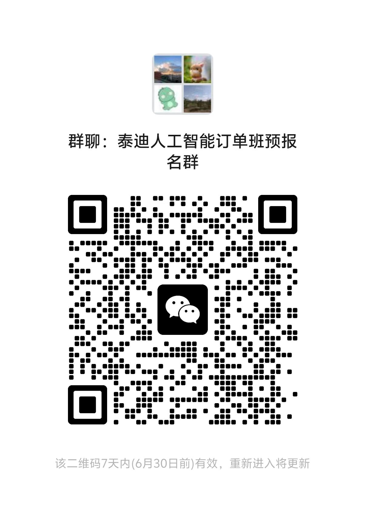 4. 报名方式:扫描下方二维码,加入泰迪人工智能订单班预报名群,填写群通知表单。