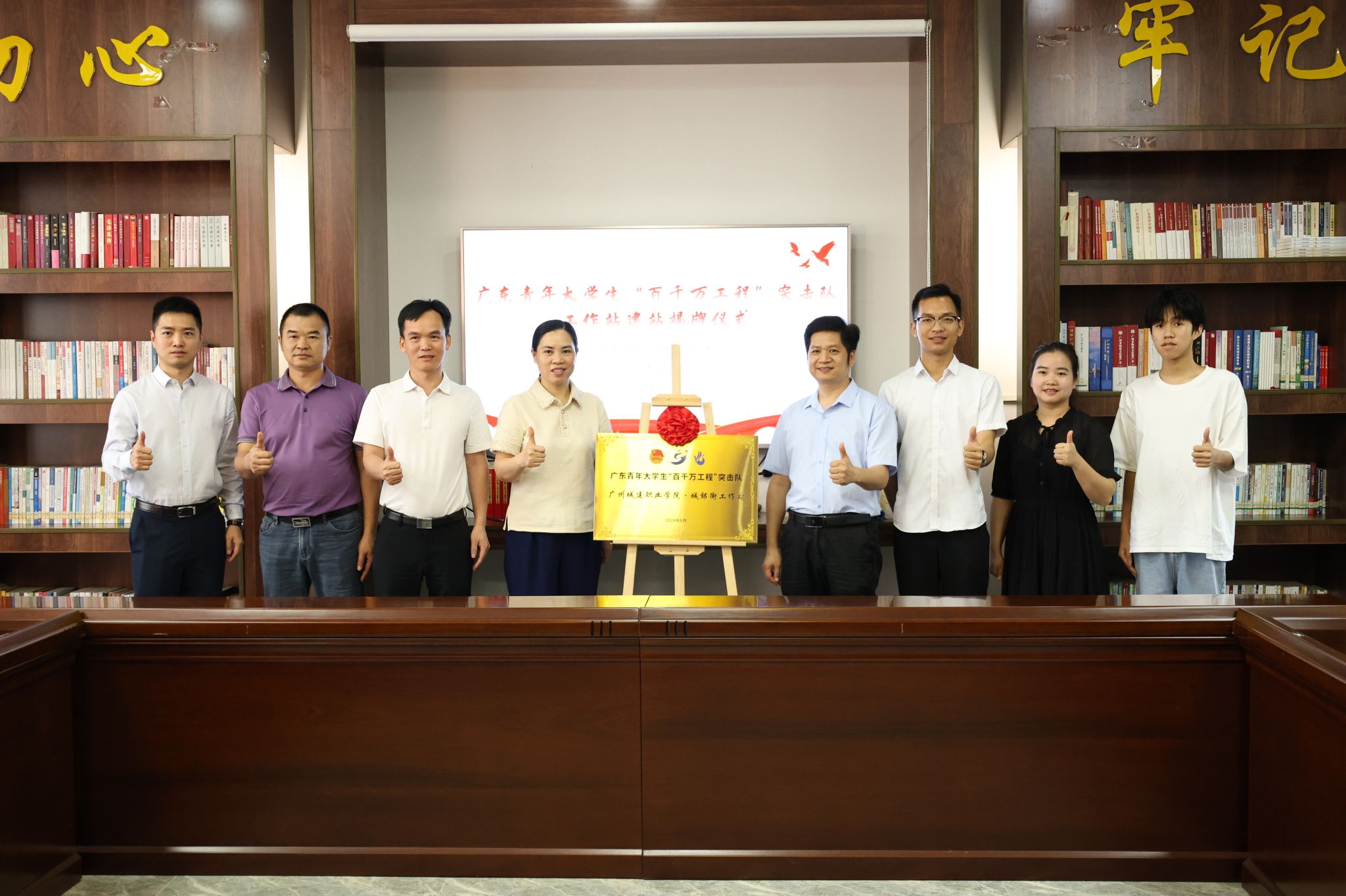 为进一步深化青年大学生“百千万工程”突击队行动,助力“百县千镇万村高质量发展工程”建设加力提速,5月24日,广东青年大学生“百千万工程”突击队行动太阳集团tyc234cc·城郊街工作站正式建立,我校校长助理孔练光、团委书记甄伟文,城郊街党工委副书记邓燕红,城郊街党工委委员、武装部部长裴志东等领导出席揭牌仪式。