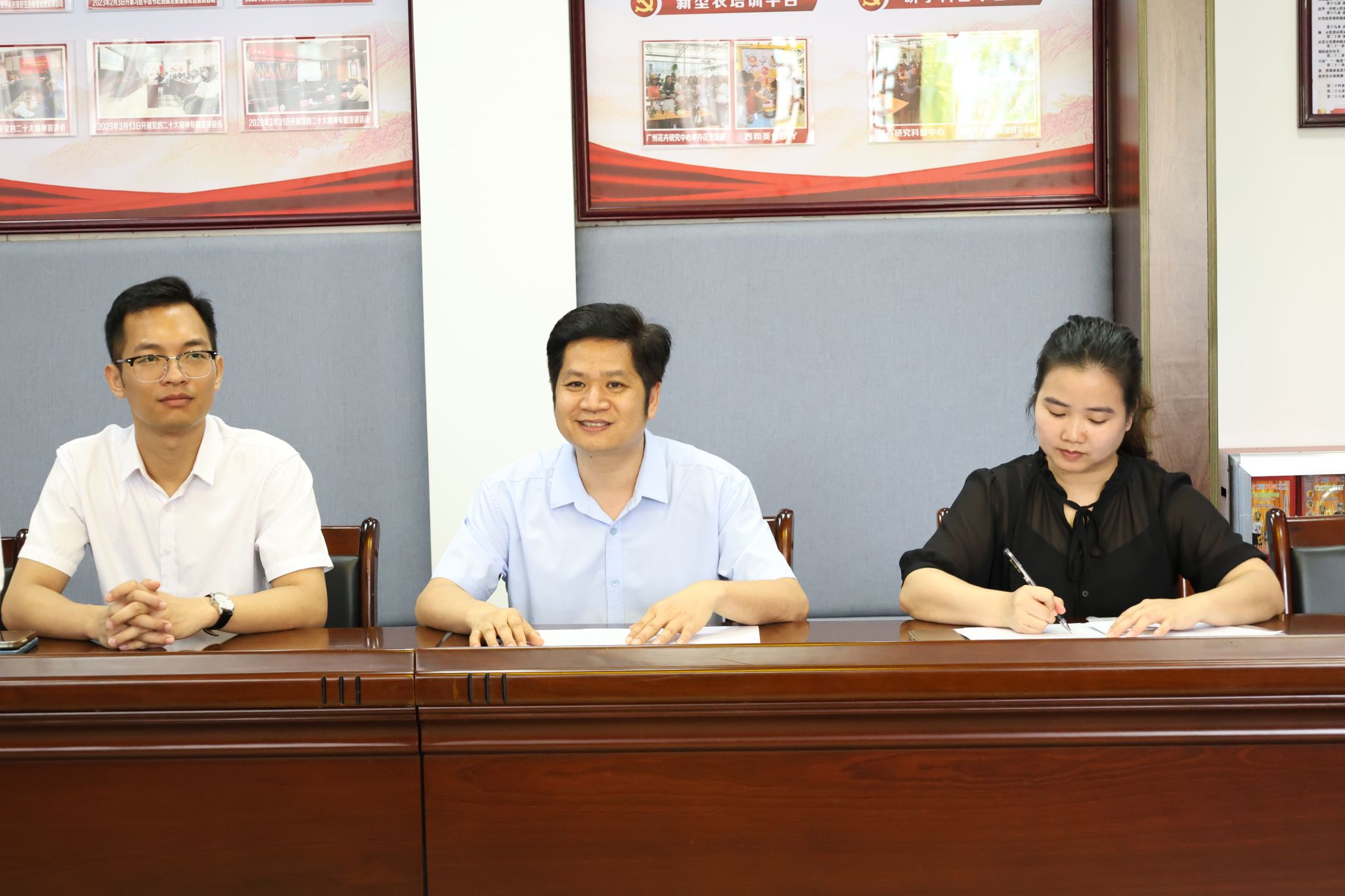 孔练光对城郊街相关领导为我校青年学生提供助力“百千万工程”高质量发展平台表示感谢,他简要介绍了学校的基本情况,并希望双方本着互相协作、各施所长、互补所需、共同发展的原则,推动高校的知识、技术、人才等优势同乡村振兴深度融合;希望学校各突击队能结合工作站的优势,坚持以村镇需求为导向,为从化高质量建设绿色发展示范区贡献青春力量。
