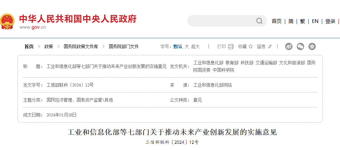 为把握新一轮科技革命和产业变革机遇,加强对未来产业的前瞻谋划、政策引导,围绕制造业主战场加快发展未来产业,支撑推进新型工业化,加快形成新质生产力,工业和信息化部等7部门联合出台《实施意见》。