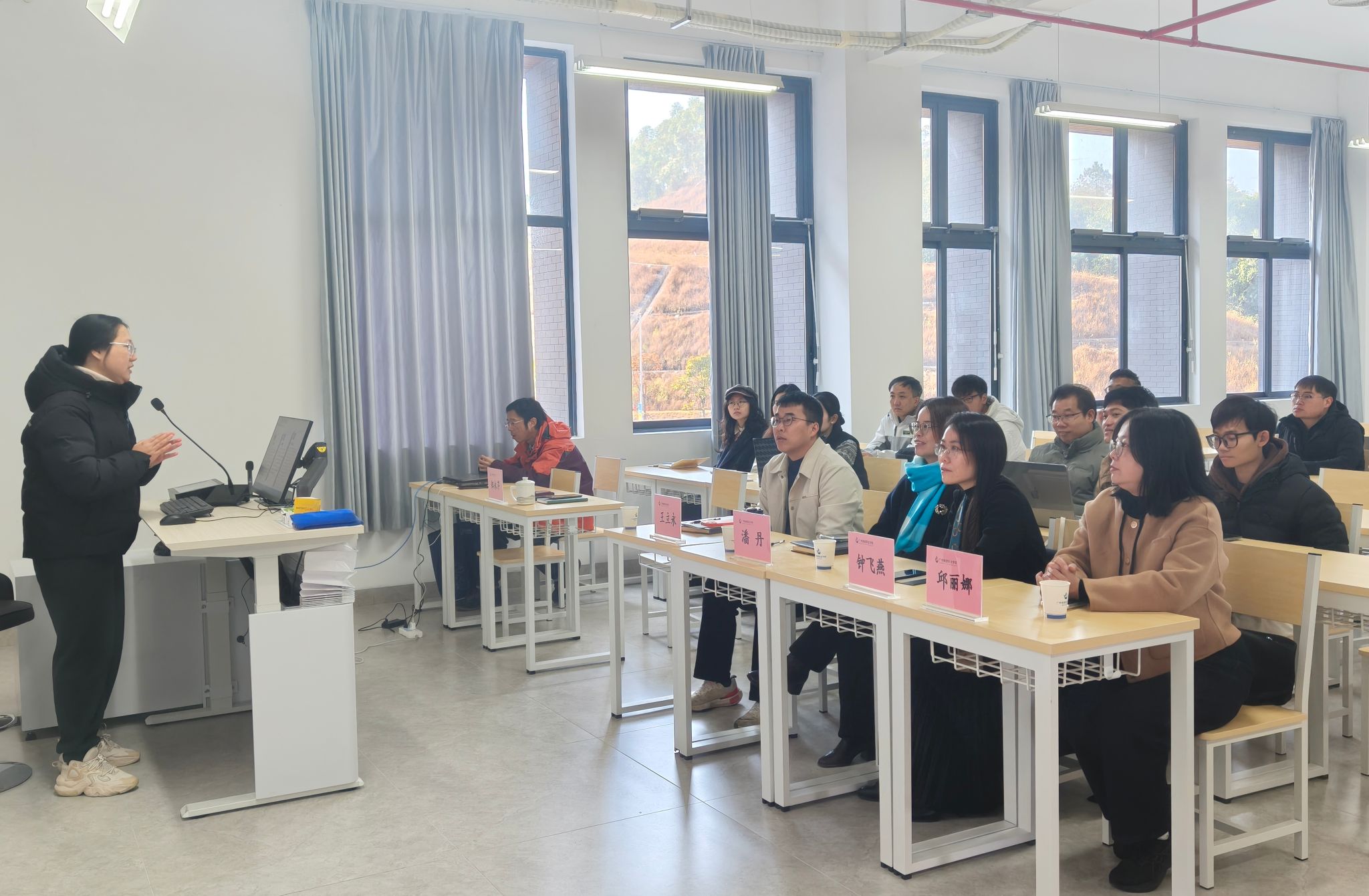 潘丹院长对本次培训分享会的实效性予以充分肯定。她表示,钟飞燕教授的分享具有重要的示范价值,邱丽娜副教授的路径指引为新教师提供了清晰方向,希望全院教师以此为契机,持续依托教学课程深耕教学研究、依托学院校企合作与产教融合项目深耕科研,推动学院教科研工作再上新台阶。
